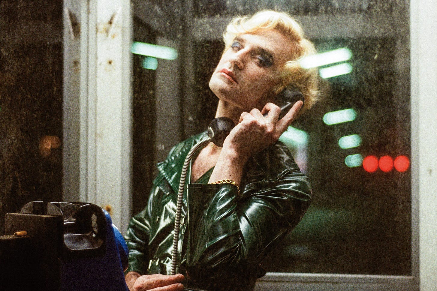 I’m easily distracted; I like a film to not so much watch as wander through, a house with many rooms. Films I really love and find aesthetically inspirational I will watch several times in a row, keep them on in the background for a week of evenings, submerging my subconscious in their images and moods. I did this with Un Couteau Dans Le Coeur. Explicit sex mixed with murder (all the killings in the film start as sex acts), buckets of blood, club and bar scenes suffused with moody neon blues, reds, pinks, drag queens, Vanessa Paradis in a dark green raincoat and red leather thigh-high boots, eye makeup streaming down her face….all matched my internal weather. I guess on the inside I’m a grimy, rainy alley in 1979 Paris.