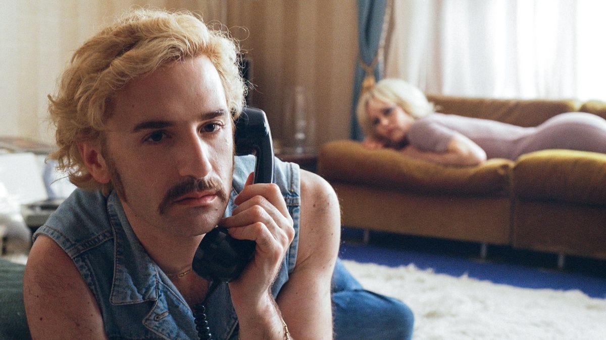 Lois still has feelings for her ex but is terrified of the monster Anne has become. Even after Anne’s stars begin turning up horrifically murdered, she believes that if she crafts an inspired enough film, she will win Lois back. As the police dismiss the murders, and the bodies pile up, Anne continues to follow her inspiration. Blurring the line between art and life, the porn flick that Anne and her team are shooting (Homocidal) mirrors the murder investigation, with her gay best friend and co-producer Archibald (Nicolas Maury) playing her, wearing her iconic green raincoat, hair the same shade of blonde, eyes made up in her signature style (heavily blue). In a wonderfully bizarre scene, Anne films her doppelganger’s appearance at the police station, but the interrogation soon devolves into both the detectives and the witness humping the table between them with wild abandon.